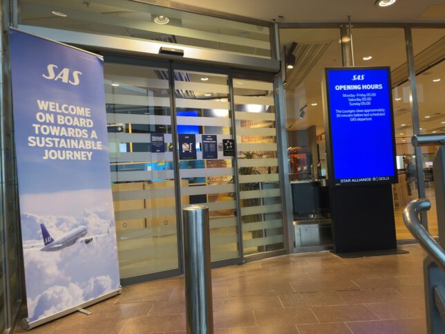 こちら入口ですが、当時はSASがギリギリスターアライアンス所属であり、自動ドアのところにスターアライアンスのマークがあります。