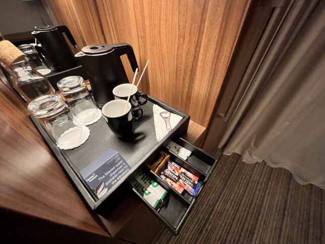 コーヒーは粉のネスカフェ、紅茶はここでもイギリスらしくTwiningです。