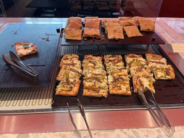ナポリピザの「もちもち」感とは対照的な、「クリスピーで軽い食感」が最大の特徴であるローマのピザ(ピッツァ・ロマーナ)が置いてありました。
