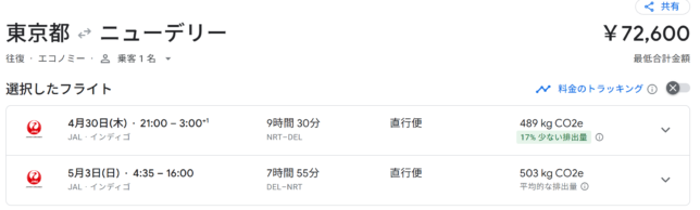 ちなみに上述した0泊インド旅は以下でした。