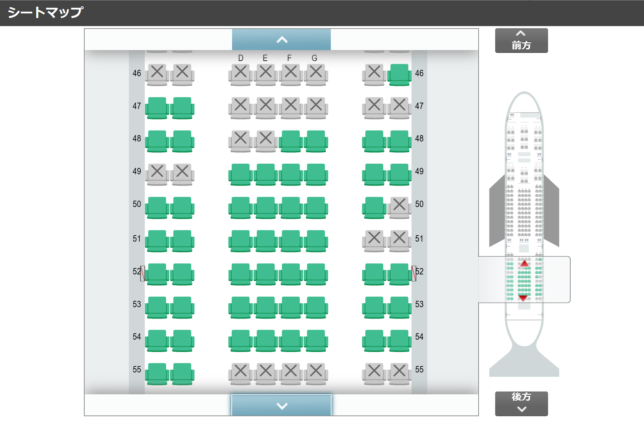 シートマップを見る感じ、GWでもかなり空きがあり、航空券が安くなっている理由のひとつかなと思います。