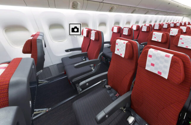 エコノミーの座席は横8列で、国際線の主力機材「JAL SKY WIDER(スカイワイダー)」を楽しみながら修行となりそうです。