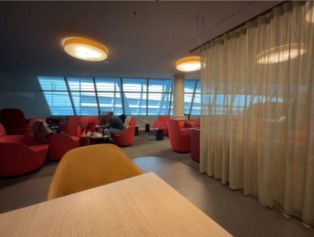 チューリッヒ空港の Marhaba Lounge(マルハバ・ラウンジ) は、モダンで落ち着いた雰囲気の共用ラウンジです。2021年にリニューアルされており、清潔感のある空間で出発前の時間を過ごせます。