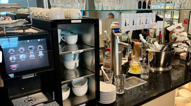 ウォーターサーバーとコーヒーマシンがあり、ワイン類も置いてありました。